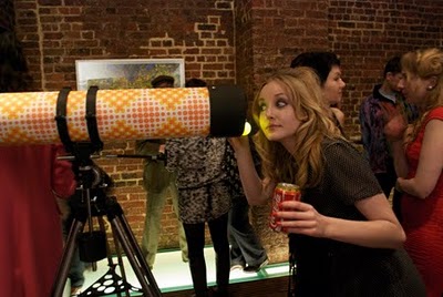 These ambitious soirees combine installation, performance and all manner of artwork with live music, an arty entourage and lashings of champagne. Setting the tone for the evening was Simon Tyszko’s red neon sculpture Serious Fun hung above the DJ decks heralding the tenor of the night to follow. Video works by Kate Hawkins and Eloise Fornieles played – Mal Gusto enacting an entertaining conflict of a female fashion/etiquette faux pas. Slowly and smoothly seemingly disparate work’s of these handpicked artists began to work together to provide a mosaic tapestry for the event.