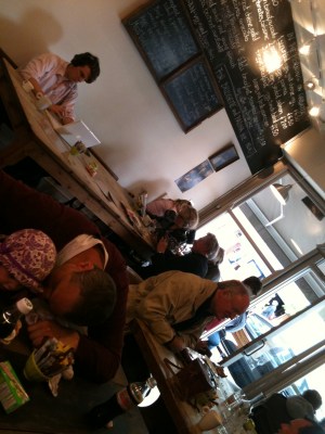 When we stopped by on a Saturday afternoon the place was busy – all the outdoor space was taken – but we soon found seats at one of the larger shared-tables. I like that inside there are 3 of these tables alongside the smaller ones; I feel like I’ve entered a large Italian family kitchen. The style blends well with the home-cooking and builds on the strong sense of local community that is present on the Golborne Road.