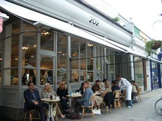 202: Nicole Farhi is the quintessential Westbourne Grove lunch spot. An impeccably dressed and coiffed clientele lounge at the pavement tables where it is never surprising to come across a London celebrity thought they hardly stand out from the regulars. Even on cold grey days these tables are bustling, sun traps, where there is no better place for a bite or coffee as you watch the world go by.