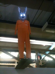This west-side story is an all encompassing event bringing together every form of artist and designer imaginable in a sprawling industrial warehouse. Performance artists, films, an interactive art disco, furniture, installations, prints, painting, musicians, photographs, educational activism, video specs, found art and more including a six-foot orange jumpsuited rabbit “walking the plank”.