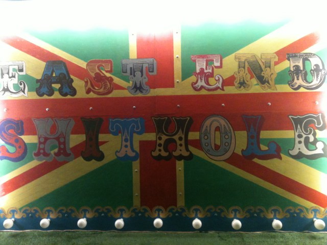 East Pop is a touring showcase of East End artistic creativity. The brainchild of Red Gallery, producers of “East End Promise” an exhibition recording the transformative work s of 1985-2000, the current show explores today’s art scene. Opened yesterday in West London it is only here a few days before moving to Edinburgh, Berlin and beyond.